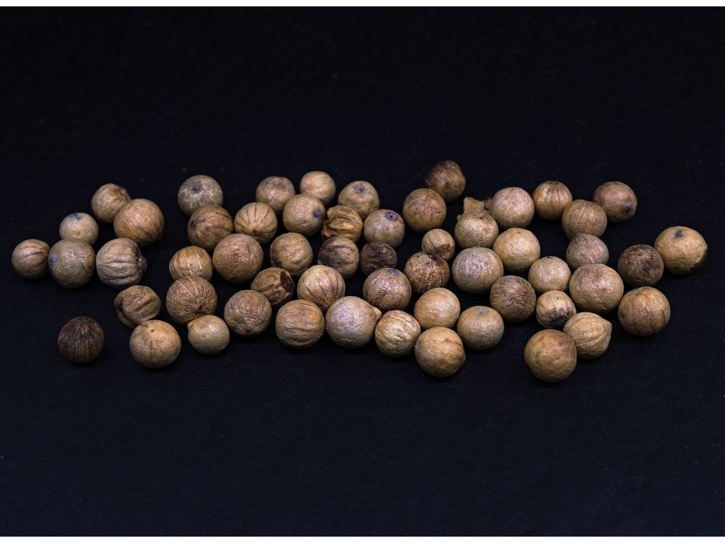 Zrelé červené bobule sa zbierajú ručne a následne sa prepláchnu vo vode, kde sa prasknutá šupka prirodzene oddelí a zostane len svetlé jadro korenia. Po vysušení má čistú farbu a typickú vôňu. Chuť je svieža, teplá a dlhá, s jemnými tónmi citrusov a byliniek